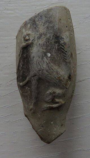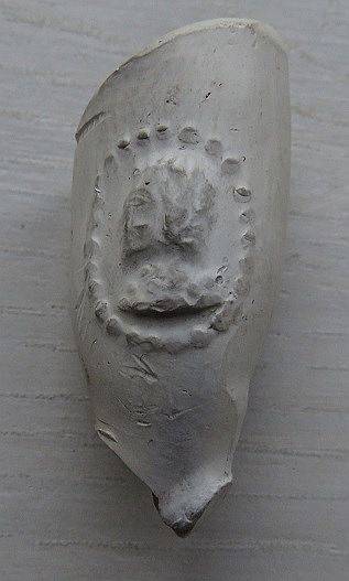 Kleipijpjes(HB) met aan twee kanten leeuwenkopjes. Ca. 1620-1640.