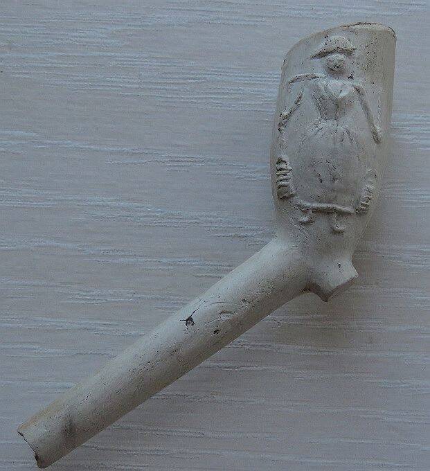 Kleipijp (part verz) van rond 1690 met aan weerszijden de voorstelling van melkmeisjes.