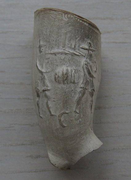 Kleipijp (Ds22FM15)Kleipijp van rond 1690 met aan weerszijden de voorstelling van melkmeisjes.