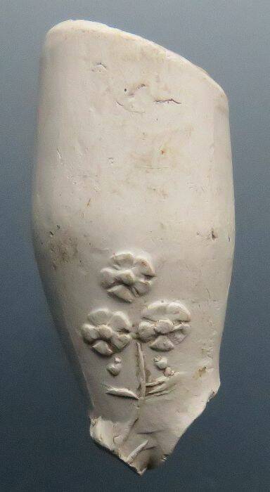 Kleipijp (AK) met Roos zesbladig / Roos zesbladig op de zijkant van de hiel. 1630-1650. West-Nederland.