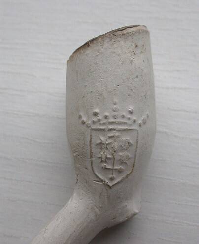 Kleipijp (part. verz) met aan twee kanten het stadswapen van Haarlem. 2e helft 17e eeuw.