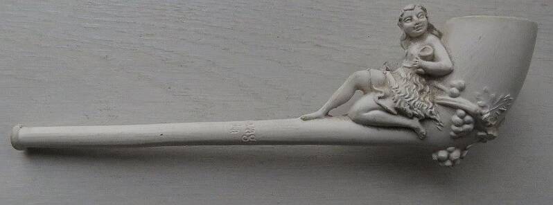 Sigarettenpijpje (SS12) met op de steel/ketel een liggende herder met staf. Goudse productie maar onbekend