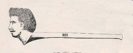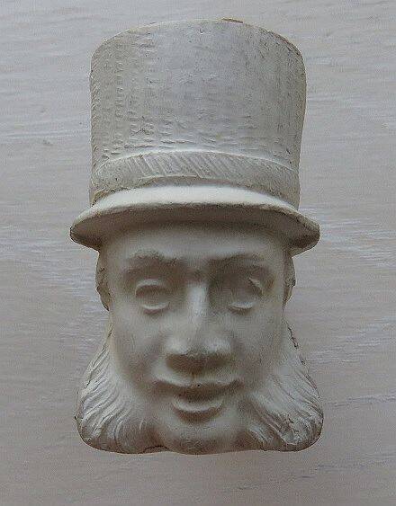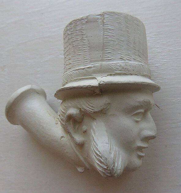 Kleipijp (Lade33FM6) Figuraal man met kuif, bakkenbaarden en snor. Handelsnaam Engelsman