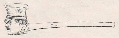 Kleipijp (Lade33FM5) Figuraal man met snor en tweekantige steek (handelsnaam Generaal)
