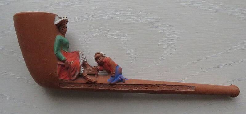 Op de steel de tekst: IT'S A SHAME TO MAKE THE MONEY. Exportpijp voor het buitenland met name Engeland.