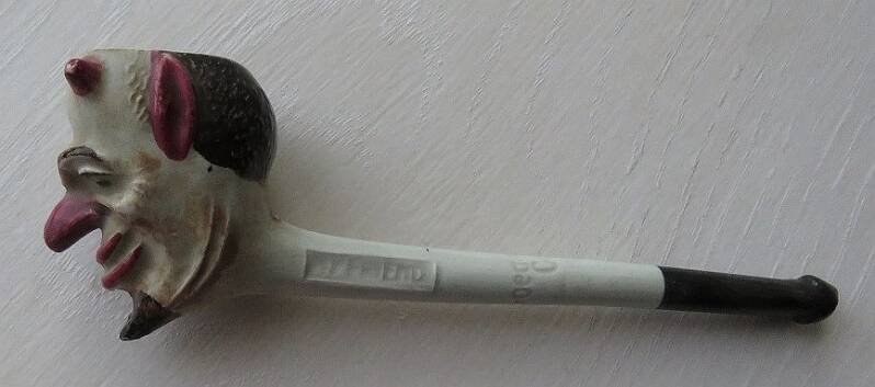 Kleipijp (Lade33FM3) figuraal met met de voorstelling van een duivel. Model 646 Handelsnaam duivel "My Friend".