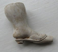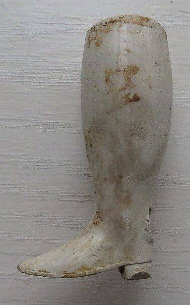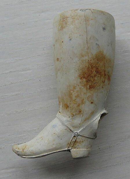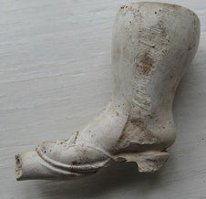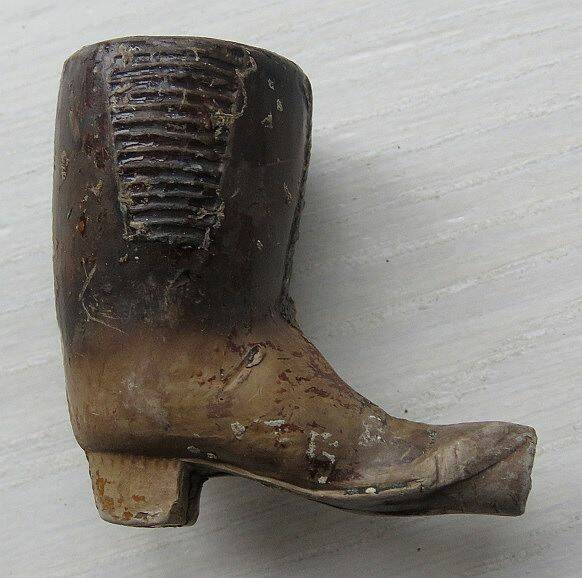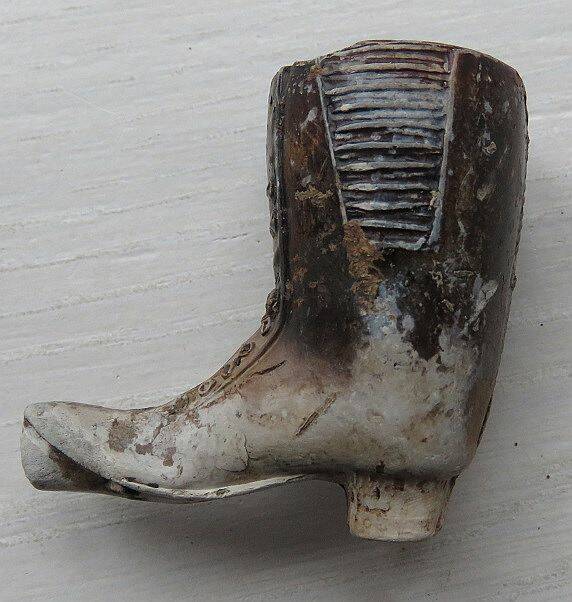 Kleipijp (lade23FM532) met een laars. Eind 19e eeuw.