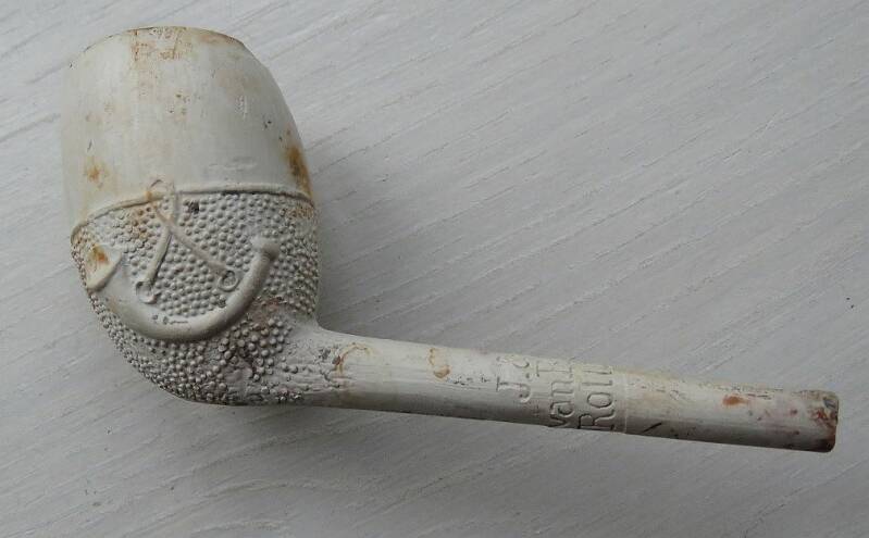 Opmerking: Reclamepijp van Tabaksfabriek Firma. J. en A.C. v. Rossem (opgericht in 1755), Nieuwe Haven 67, Rotterdam..