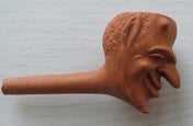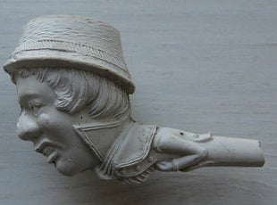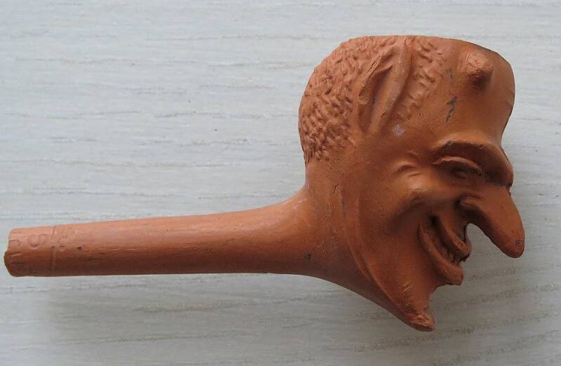 Kleipijp (Lade20FM571) Figuraal met een gezicht. 2e helft 19e eeuw. Pijpenmaker: Sparnaay.