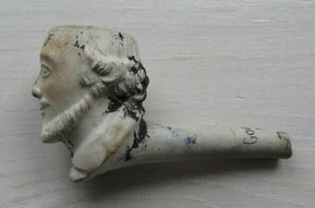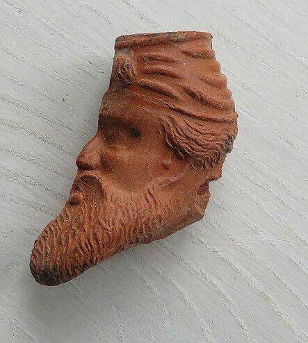 Kleipijp (lade23FMgeennummer) met het gezicht van een man. P. Goedewaagen. Omstreeks 1900.