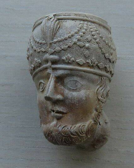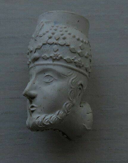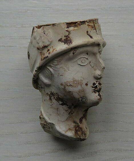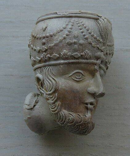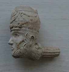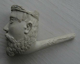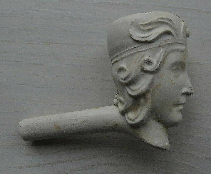 Kleipijp (Lade20FM21) Figuraal met (Griekse) Goddelijk figuur. Gouda. 2e helft 19e eeuw. Merk: geen