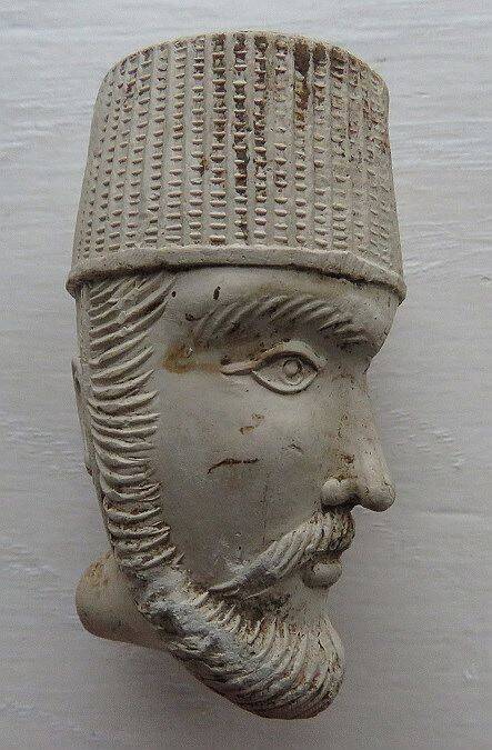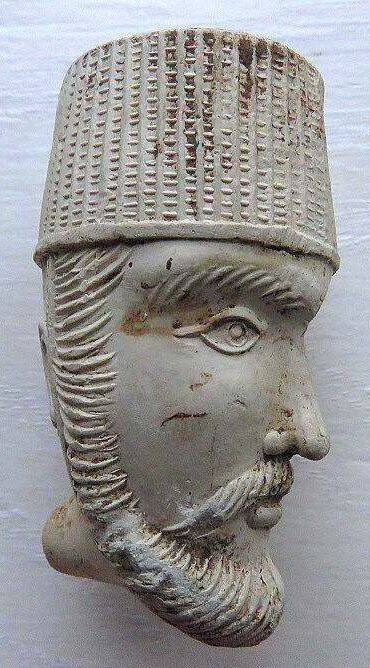 Kleipijp (HB19) met Gezichtpijp Turkenkop Man met Tulband baard en snor. Hielmerk: WI gekroond.