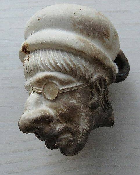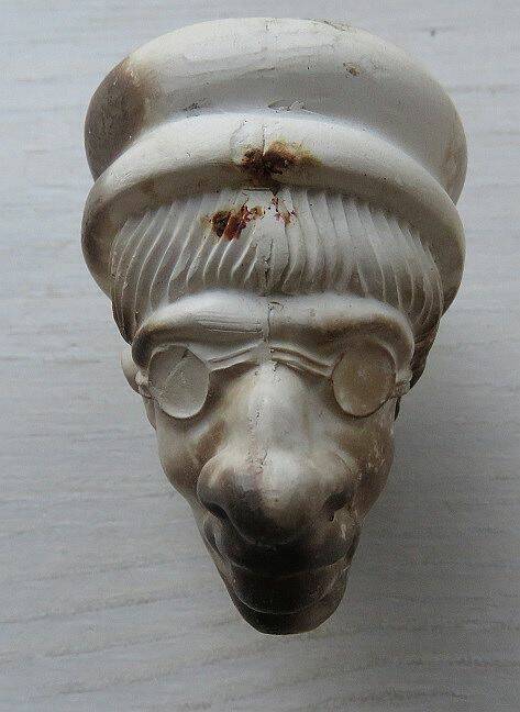 Geglazuurde kleipijp (AK) in de vorm van de persoon Paul Kruger. 1e kwart 20e eeuw. Fabriek: Hollandia/van de Want en Barras Gouda.