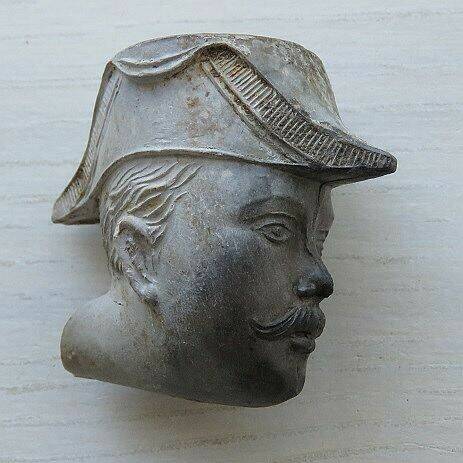 lade71FM65. Kleipijp. Figuraal gezichtspijp. Militair met hoge pet.