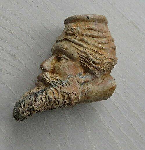 Kleipijp (Lade20FM496) Figuraal sigaretten/sigaarpijpje man met baard. Gouda Ca. 1900. Pijpenmaker: onbekend.