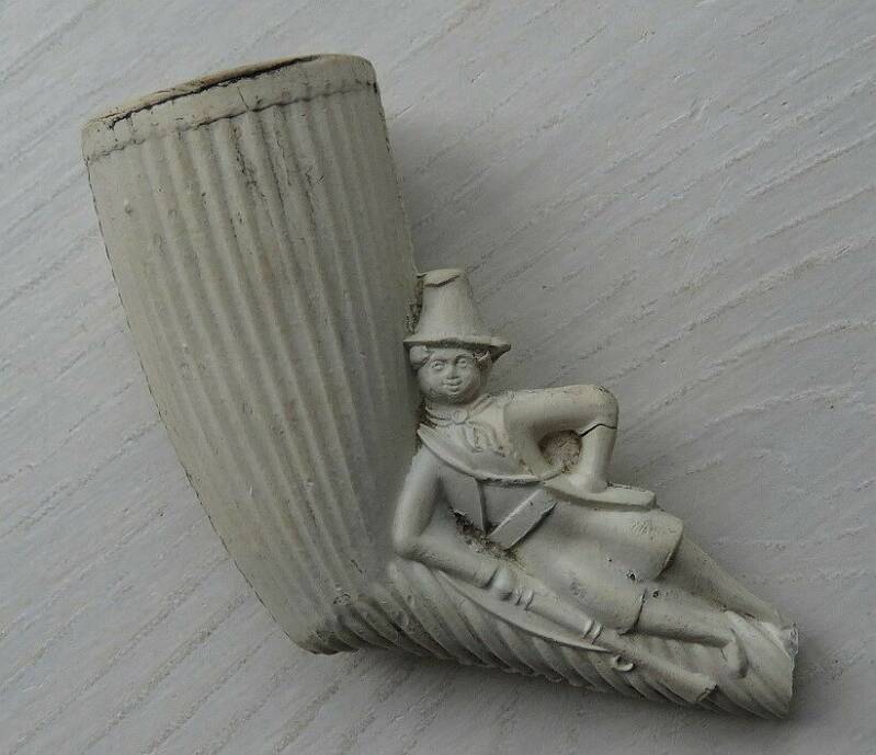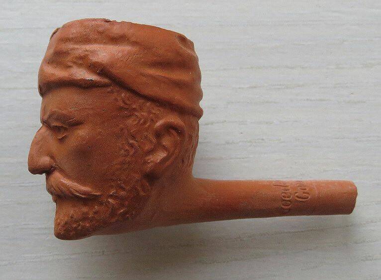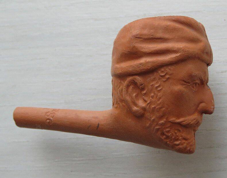 Kleipijp (Lade57FM37) met een man met pet en snor.