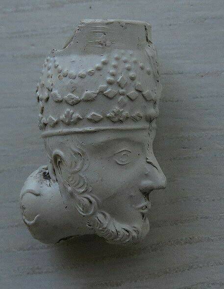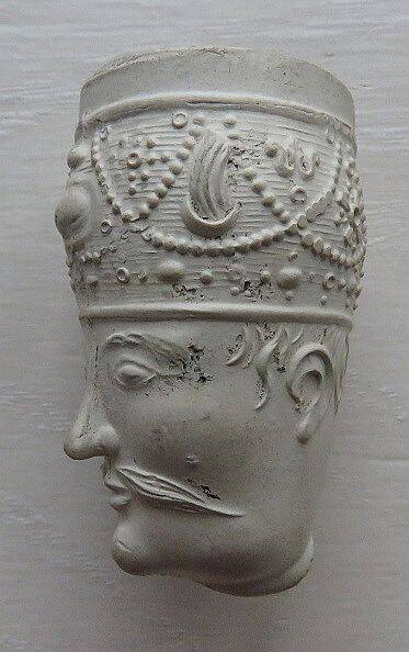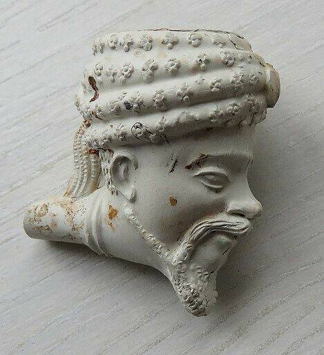 Kleipijp (Lade57FM105) Figuraal Turkenkop met tulband. Gouda. 1850-1890. Pijpenmaker: Goudse pijpenmaker