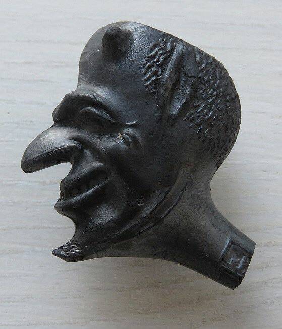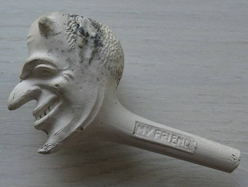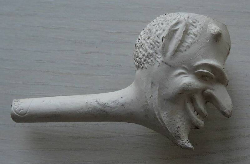 Kleipijp (lade23FM1229) in de vorm van een monsterkop. 2e helft 19e eeuw. Pijpenmaker: Sparnaay