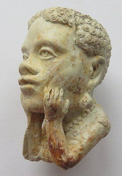 Kleipijp (Lade61FM17) Figuraal met een man uit Afrika. Fabriek: P. Goedewaagen. Omstreeks 1900.