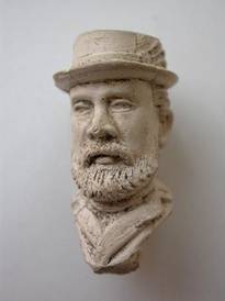 Kleipijpen (FM) Machetpijp Figuraal Gezicht met bakkenbaarden en hoed van Paul Kruger. 1900-1940.