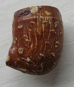 Sigaretten/sigaarpijpje (Ds95FM)van een man met baard. Ca. 1880. Bodemvondst: Achterwillens Gouda