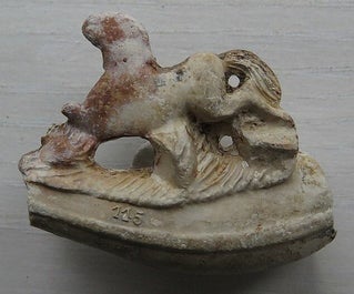 Sigaretten/sigaarpijpjes (Ds95FM) met de voorstelling van Mercurius. Ca. 1880. Vindplaats: Gouda/polder Achterwillens.