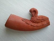 Sigaretten/sigaarpijpje(part verz) in de vorm van een hoorn met een kip. Ca. 1880. Pijpenmaker: Firma P. van der Want Gzn.