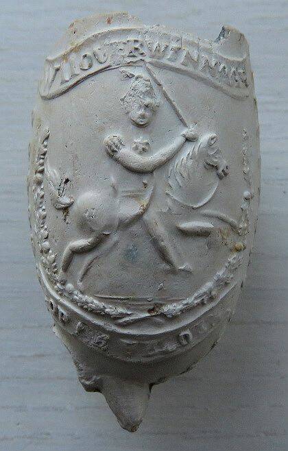 Kleipijp Isabémodel (Ds39FM1184) Prins Willem II te paard / Vluchtende Napoleon Tekst: W II OVERWINNAAR
