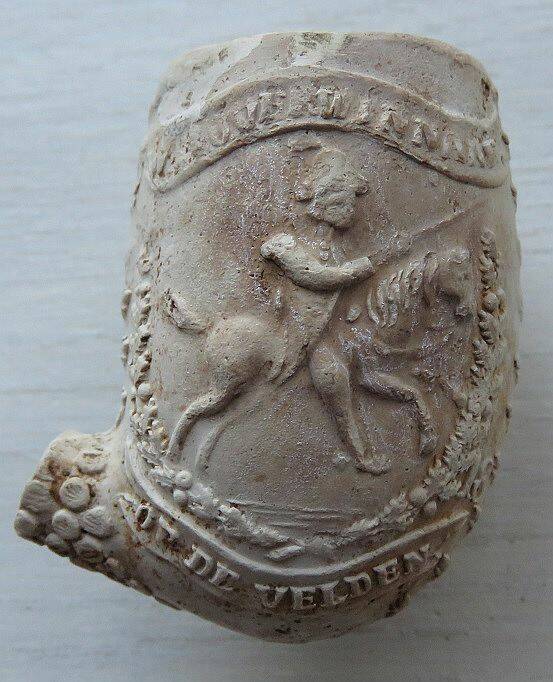 Kleipijp (Ds21FM014) Ovoidepijp met rondom medaillons met Prins Willem II te paard, Baron Chasse en J.C.J. van Speyk.