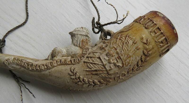 JARIG BESTAAN VAN NEERLANDS VRIJHEID (nogal versleten). Pijpenmaker: P.J. van der Wan1872.