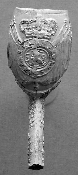 Willem II maakte deel uit van de alliantie die Napoleon versloeg. Op de ketel rondom de tekst: DE TWEEDE WILLEMSMOED
