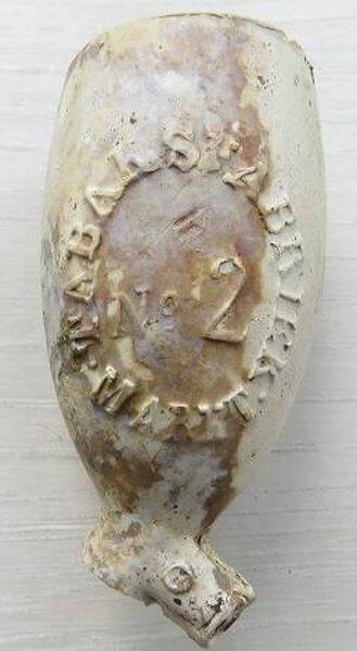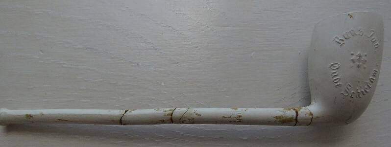 2e helft 19e eeuw. Pijpenmaker: onbekend. Vindplaats: Gouda/ Raam Koningshof.
