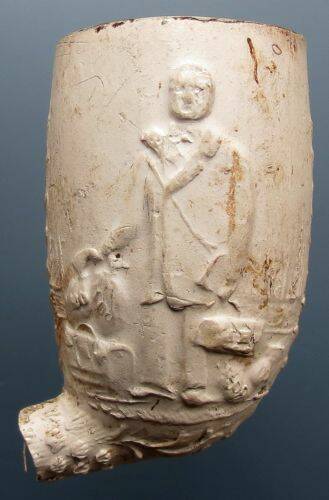 Kleipijp (lade26FM048) met een stoomraderboot en een anker. Eind19e eeuw.