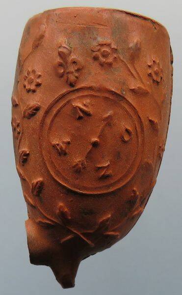 anker + roosjes opgebouwd uit bloemen. Geen hielmerk. Pijpenmaker: P. Goedewaagen & Zoon.
