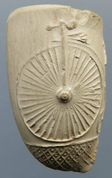 Kleipijp (AK) Vélocipède + datering 1817. Vierde kwart 19e eeuw. Gouda. Pijpenmaker: Jan Prince & Cie.