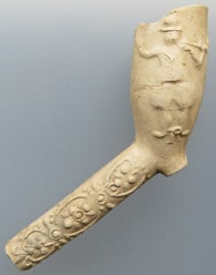 Kleipijp (Ds22FM15)Kleipijp van rond 1690 met aan weerszijden de voorstelling van melkmeisjes.