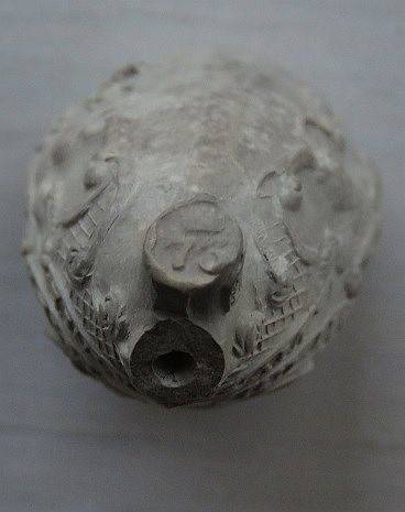 Waarschijnlijk uitgebracht bij hun huwelijk. Omstreeks 1625. Bodemvondst: Boskoop Tuinderij.