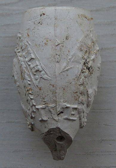 Kleipijp (Ds06FM) van ca. 1670 met de voorstelling van een tekst met het opschrift VIVA ORANGIEN omgeven door een lauwerkrans.