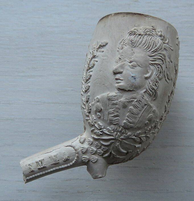 De volledige tekst op de steel van deze pijp luidt "Prins Willem de Eerste, vader des Vaderlands". 2e helft 19e eeuw.