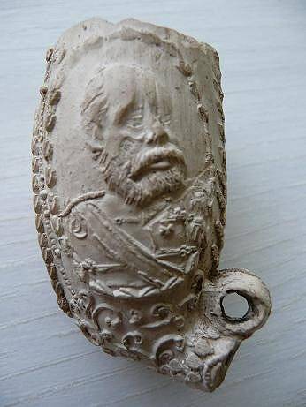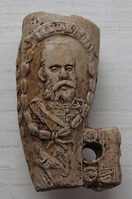 Kleipijp (lade33FM20) Figuraal met de voorstelling van Koning Willem III. Gouda. Ca. 1870. Pijpenmaker: Goudse pijpenmaker.