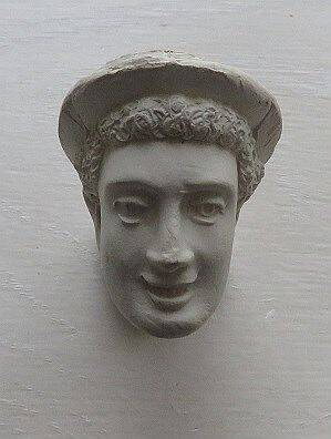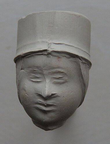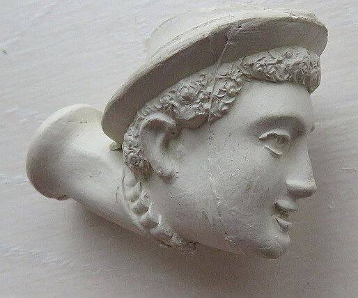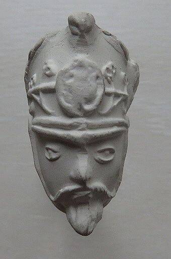Kleipijp (Lade13FM55) Manchet figuraal met het gezicht van de God Homerus. Ca. 1800-1920. Gouda.