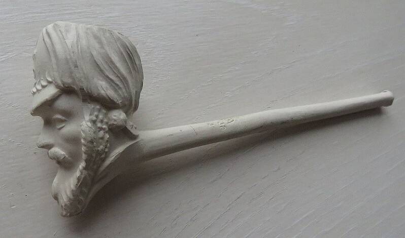 Kleipijp (Lade33FM19) Manchetpijp figuraal (Handelsnaam Tien geboden kop).