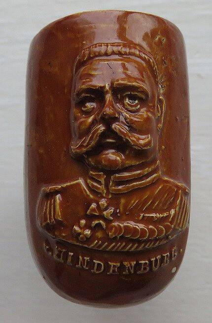 Kleipijp (Lade25FM50) Figuraal met het gezicht van HINDENBURG Rijkspresident van Duitsland en opperbevelhebber in de 1e wereldoorlog.