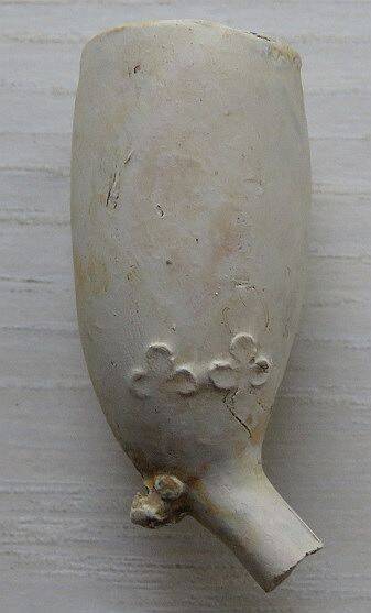 Kleipijp (Lade27FM01) Zijmerk: Twee klaverbladen. 1730-1759. Gouda. Pijpenmaker: Dirk van der Kist Vindplaats: Gouda/omgeving
