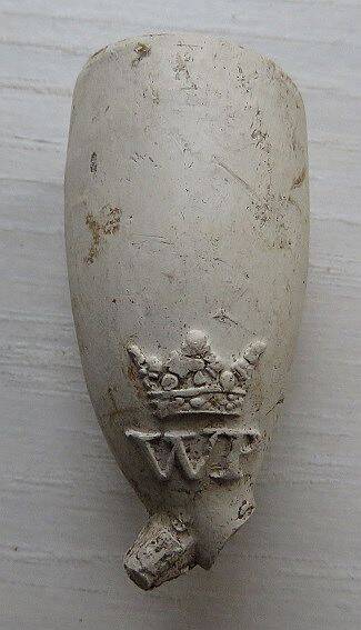 Kleipijp (Lade27FM05) Zijmerk: WP gekroond. Gouda. 1753-1770.