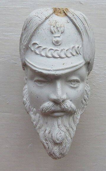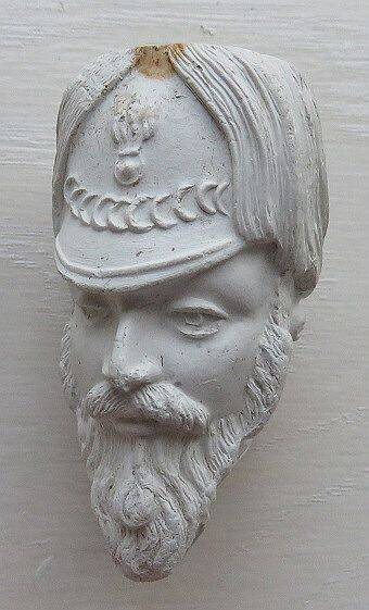 Kleipijp (lade33FM28) figuraal gezichtspijp van Alexander II van Rusland. Handelsnaam Alexandre II, tête Modelnummer 822. Frankrijk.