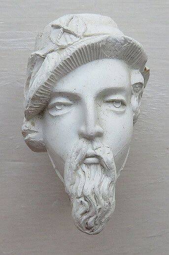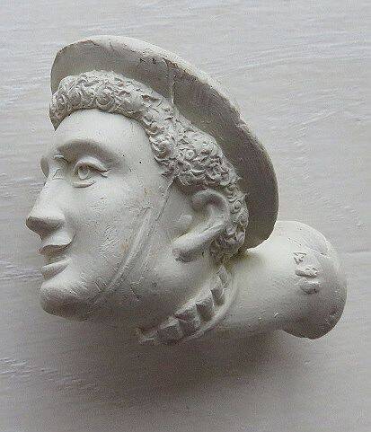 Kleipijp (Lade25FM45) Figuraal met het gezicht van William Shakespeare ? Engeland. Midden 20e eeuw. Pijpenmaker: Eric G. Ayto