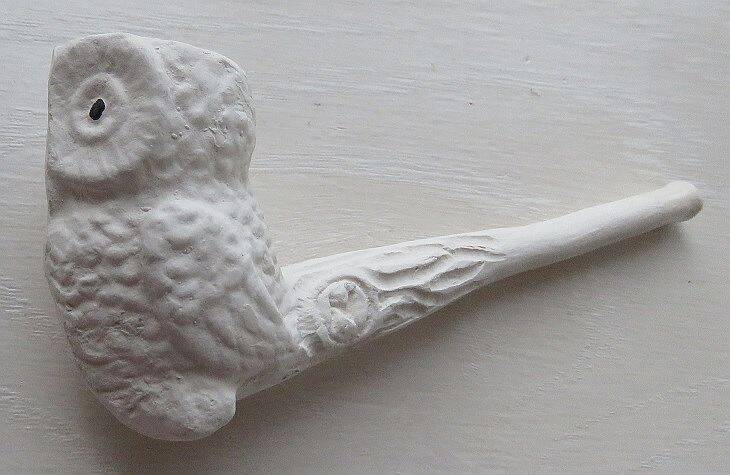 Kleipijp (lade33FM47) figuraal met de voorstelling van een uil. Engeland. Midden 20e eeuw. Pijpenfabriek: onbekend