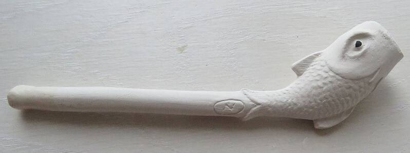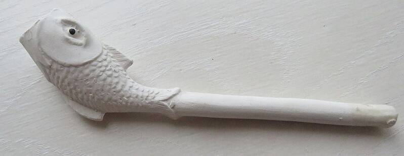Kleipijp (Lade33FM51) figuraal shagpijp in de vorm van een vis. Engeland? Midden 20e eeuw. Pijpenmaker: onbekend.