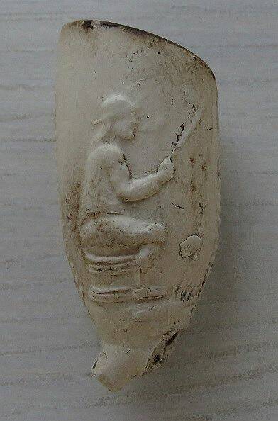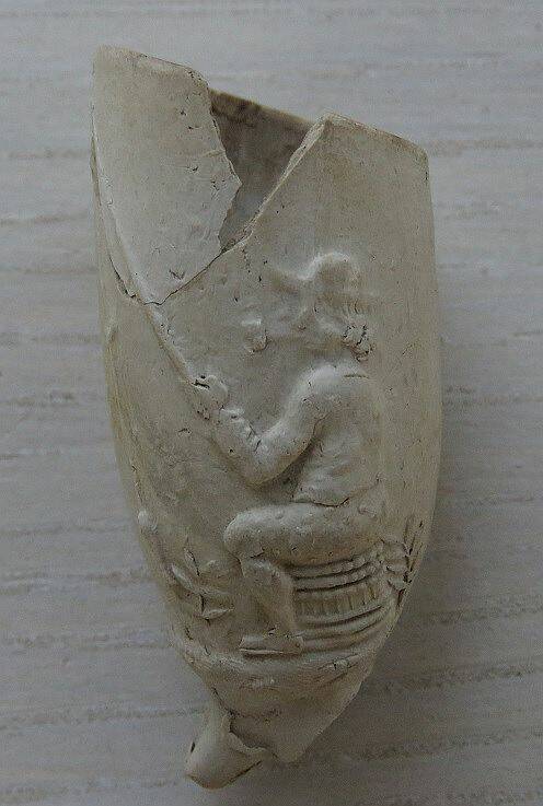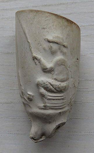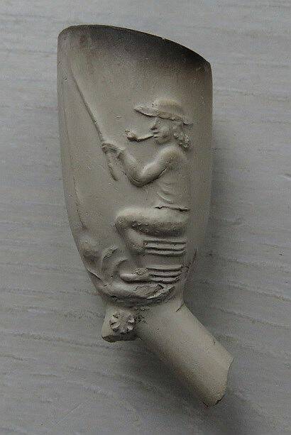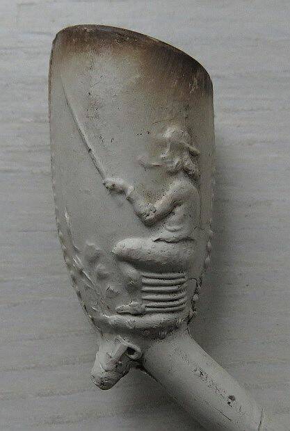 Kleipijp (EK) van het parelnaadtype met visser en poepende man.